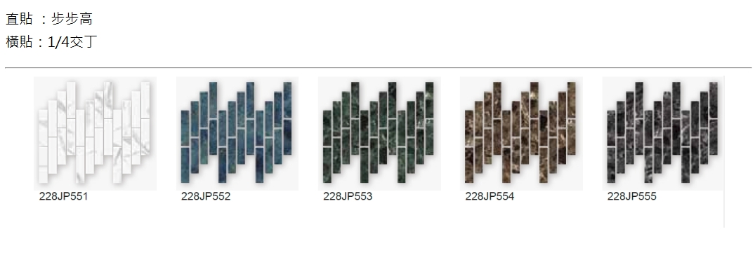 編號:47JP-500 (4種尺寸/18種變化) 顏色:銀狐 尺寸:47*4.7 |2.2*2.2 |2.2*4.7|2.2*9.7cm 適用:壁磚 地磚 |